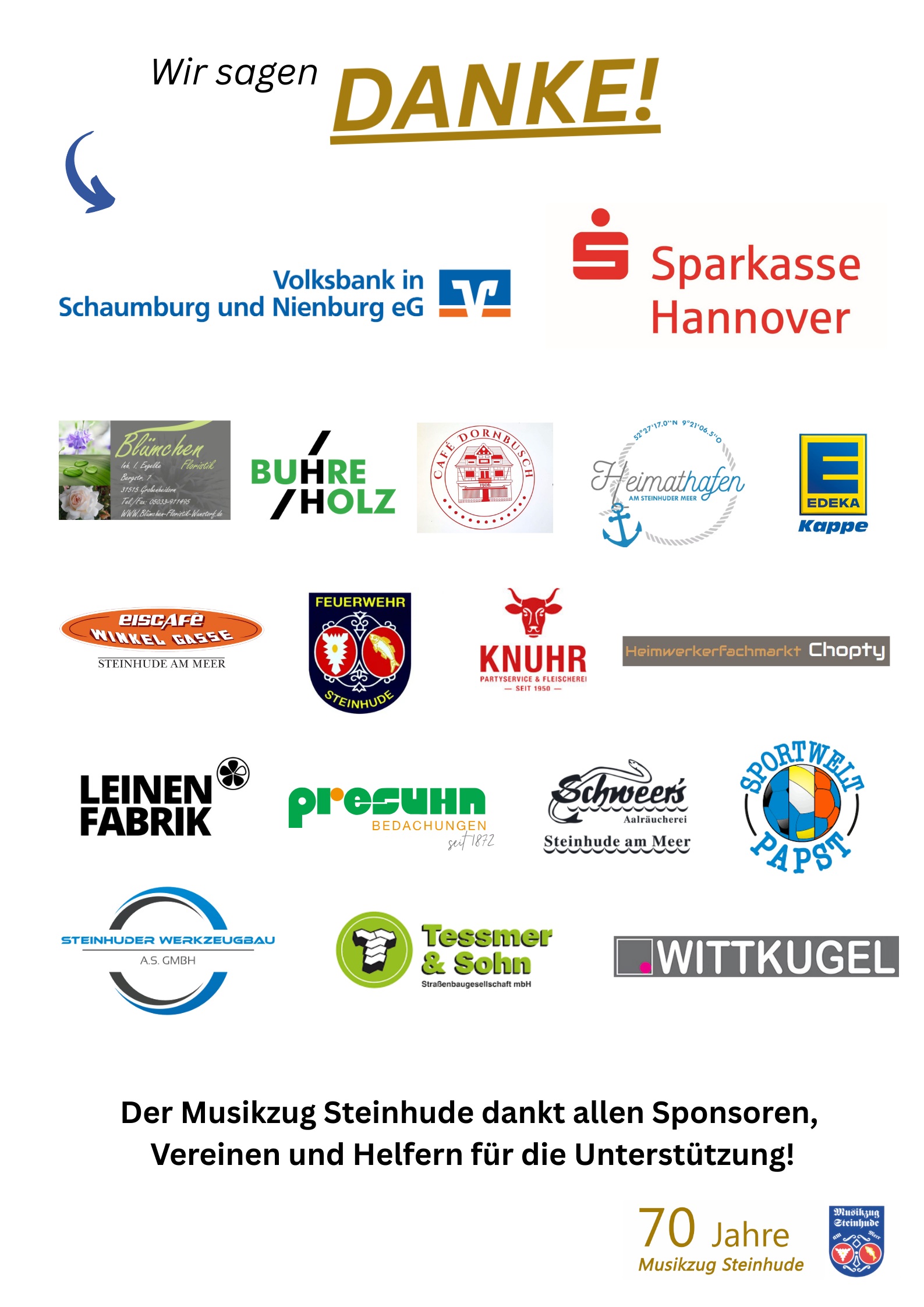 Der Musikzug Steinhude dankt allen Sponsoren, Vereinen und Helfern für ihre Unterstützung!